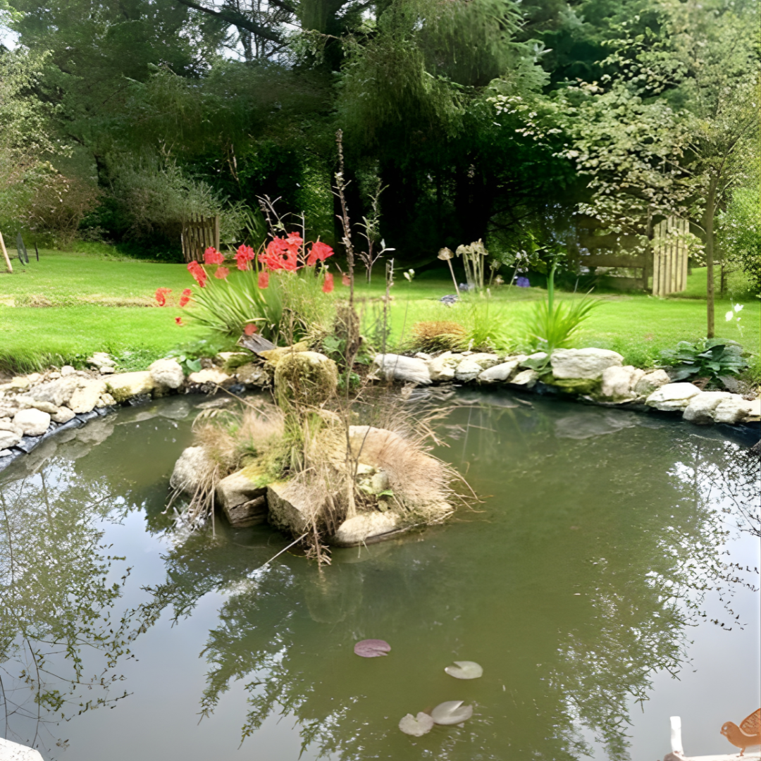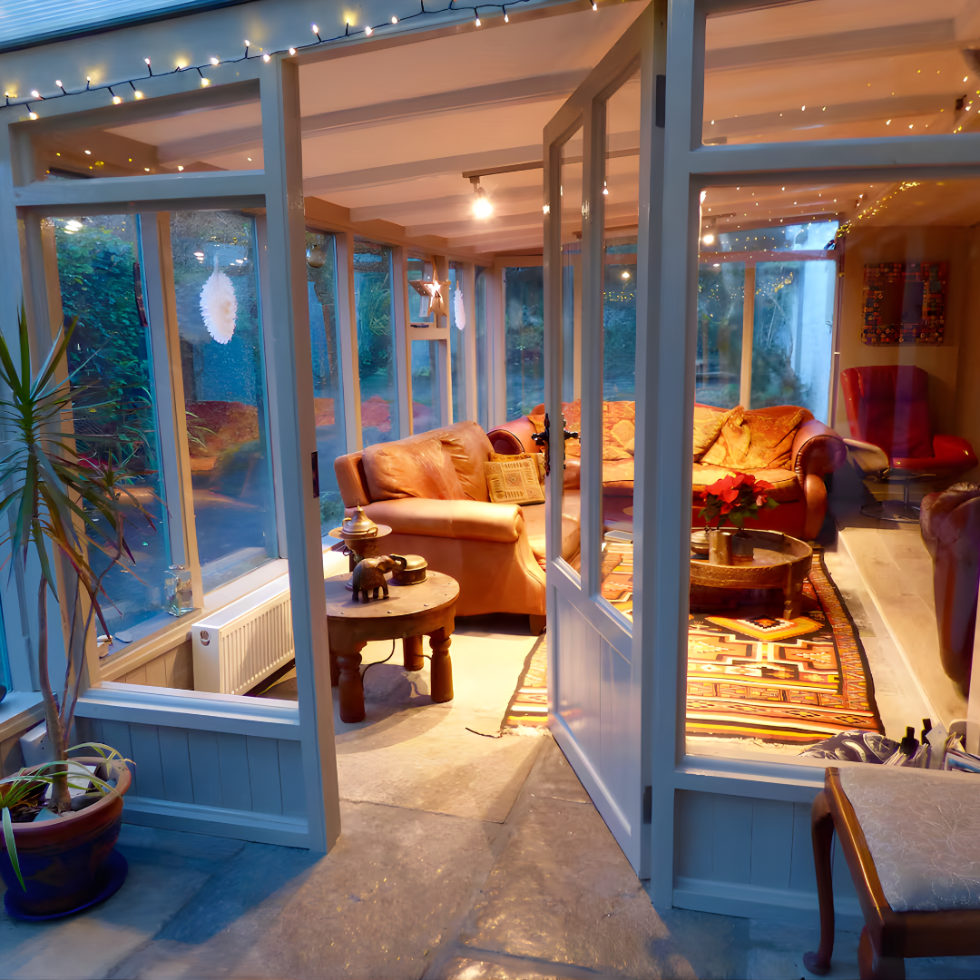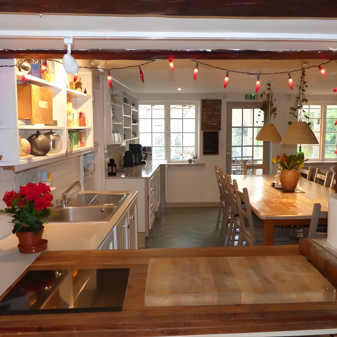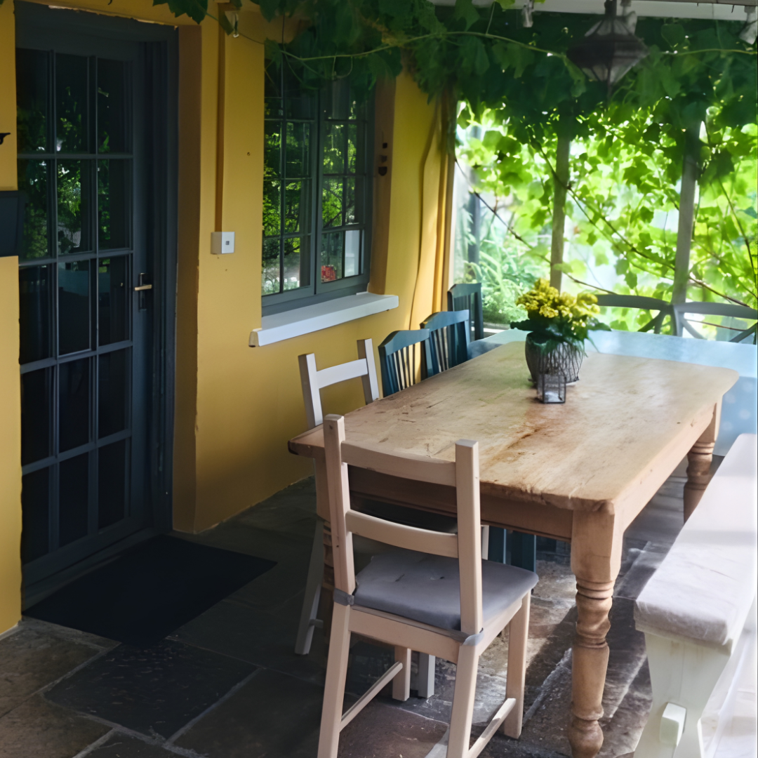 Outside, mature, wild, and playful gardens unfold, spaces to wander, rest, laugh, or simply be. A sun-kissed terrace, a fire pit for evenings under the stars, and open skies invite connection and conversation long after the day softens into night.